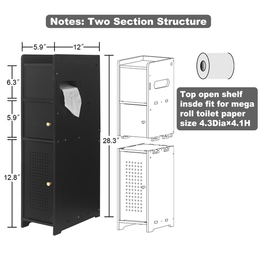 AOJEZOR Toilet Paper Holder Stand: Bathroom Storage Cabinet for Small Bathroom-Toilet Paper Holder Fit for Mega Roll-Matte Black